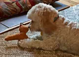Sasha (formerly Maple) with one of her new toys.